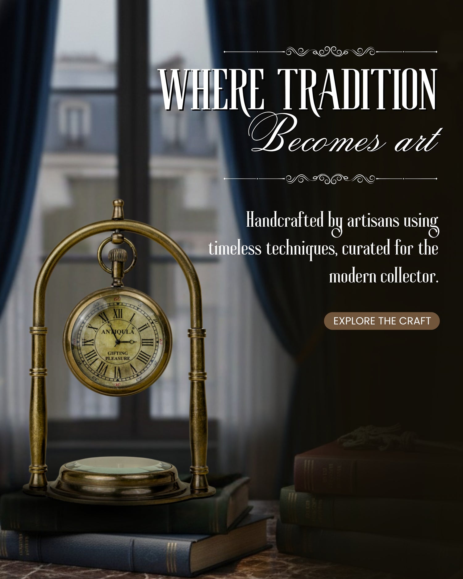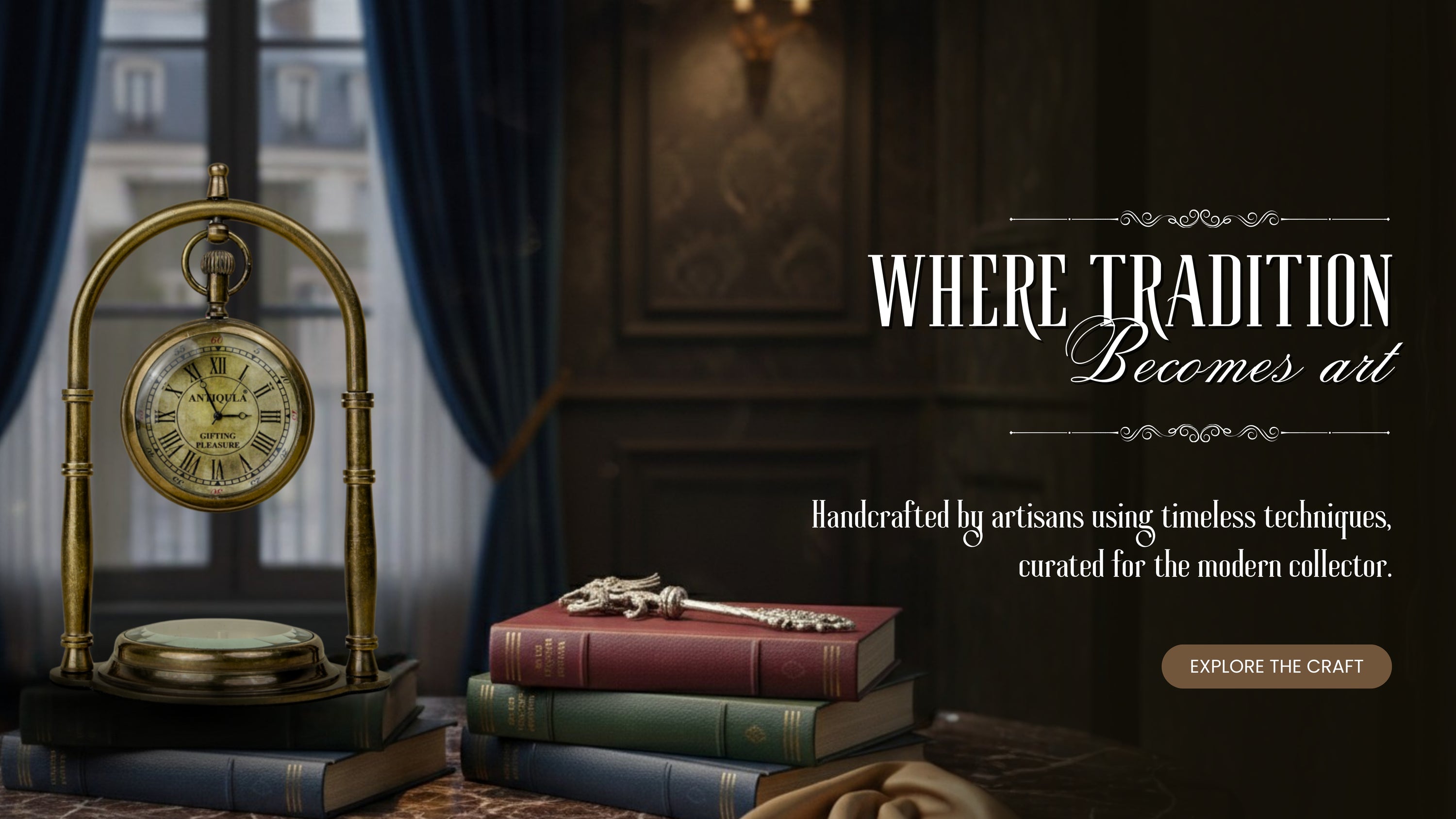 At Antiqula, every piece is more than décor it’s a story of time, exploration, and craftsmanship. From vintage-inspired table clocks to celestial armillary globes, our collection reimagines classical instruments for the modern desk, study, or living space.